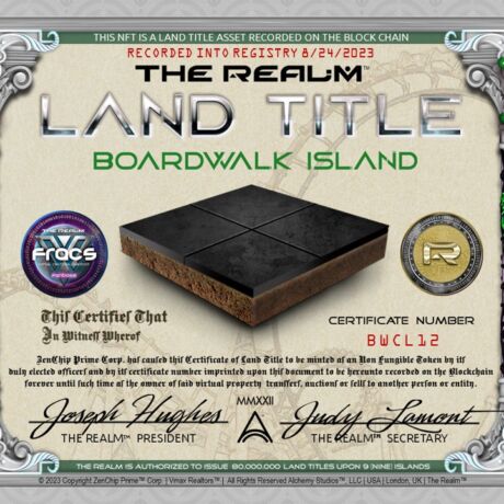 Immerse in a colossal theme park fusing Sea World, Universal Studios, Busch Gardens, and Disneyland’s charm. From thrilling coasters on cliff-sides to vibrant events at the coastal stadium, it’s the pinnacle of family fun. Secure a Blockchain-verified Boardwalk Commercial Large Land Title, anchoring your place in this entertainment paradise. Every purchase rewards a unique FRAC from Alchemy Studios, making you an art owner and a key player in shaping The Realmâ„¢. Stake your claim today!