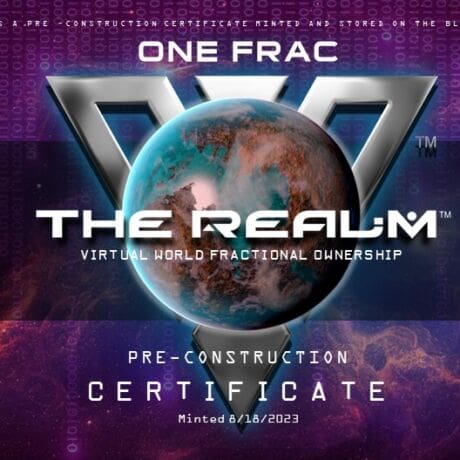The Realm FRAC is a serialized, signed individual work of art and serves as Virtual ownership of a fractional part of The Realmâ„¢ and a NFT. The NFT is in fact a PRE Construction Certificate that can be held by the owner as The Realmâ„¢ Hyper Realistic Virtual World is Being built. As the Land Titles are sold and become rare, your PCC Certificate will reserve a spot in The Realm for you as an Owner.