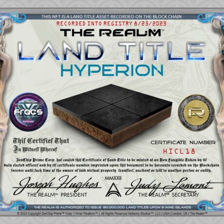 Hyperion Island is where everyone will enter first enter The Realm™ at Commerce Center. This is at the epicenter of The Realm™. The Commercial property in this metropolitan location is populated by indoor and outdoor malls, businesses, outdoor kiosks, business to business and retail outlets for products and services from all over The Realm ™. Land Title Commercial Business owners can even Buy, Lease, Broker Properties, Rent out offices to other members. High rises and skyscrapers are common in Hyperion Island on (Hyperion Island) with floors that take members up for amazing VR Views and simultaneously offer them NFT’s, Products and Services throughout the buildings that occupy each owner’s property.