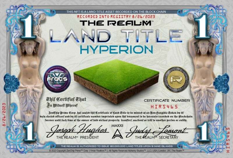 Hyperion Island is where everyone will enter first enter The Realm™ at Commerce Center. This is at the epicenter of The Realm™. The Commercial property in this metropolitan location is populated by indoor and outdoor malls, businesses, outdoor kiosks, business to business and retail outlets for products and services from all over The Realm ™. Land Title Commercial Business owners can even Buy, Lease, Broker Properties, Rent out offices to other members. High rises and skyscrapers are common in Hyperion Island on (Hyperion Island) with floors that take members up for amazing VR Views and simultaneously offer them NFT’s, Products and Services throughout the buildings that occupy each owner’s property.